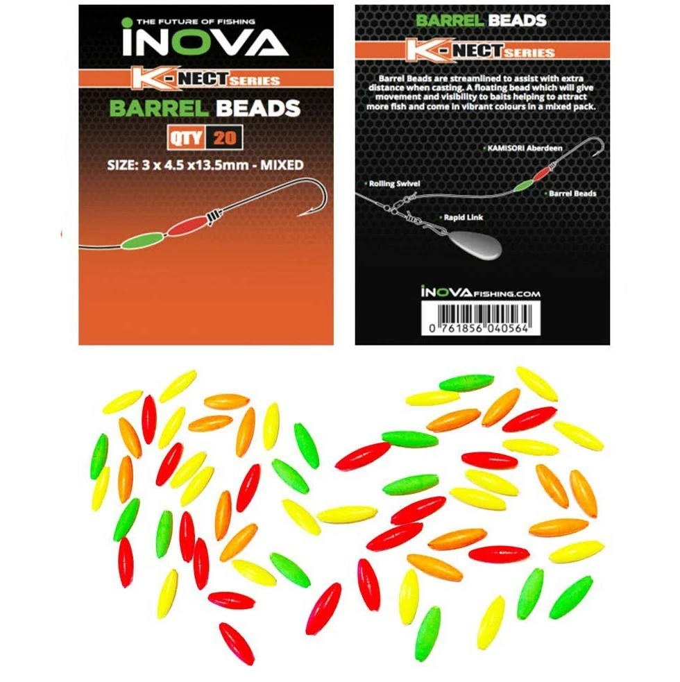 Inova Barrel Beads come in 4 vibrant colours with aΒ streamlined barrel shape to assist anglers when extreme casting. They offer plenty of movement whilst also incredibly buoyant which really attracts fish.