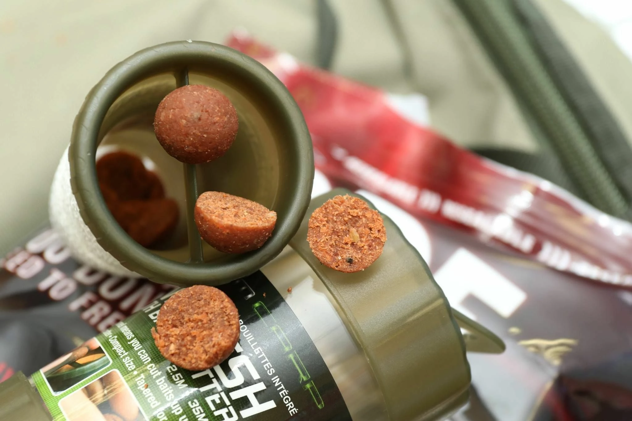 The Korum PVA Mesh With Bait Cutter, a complete compact kit for building your own PVA mesh bags. Supplied in a resealable tube that has its own built in bait cutter.